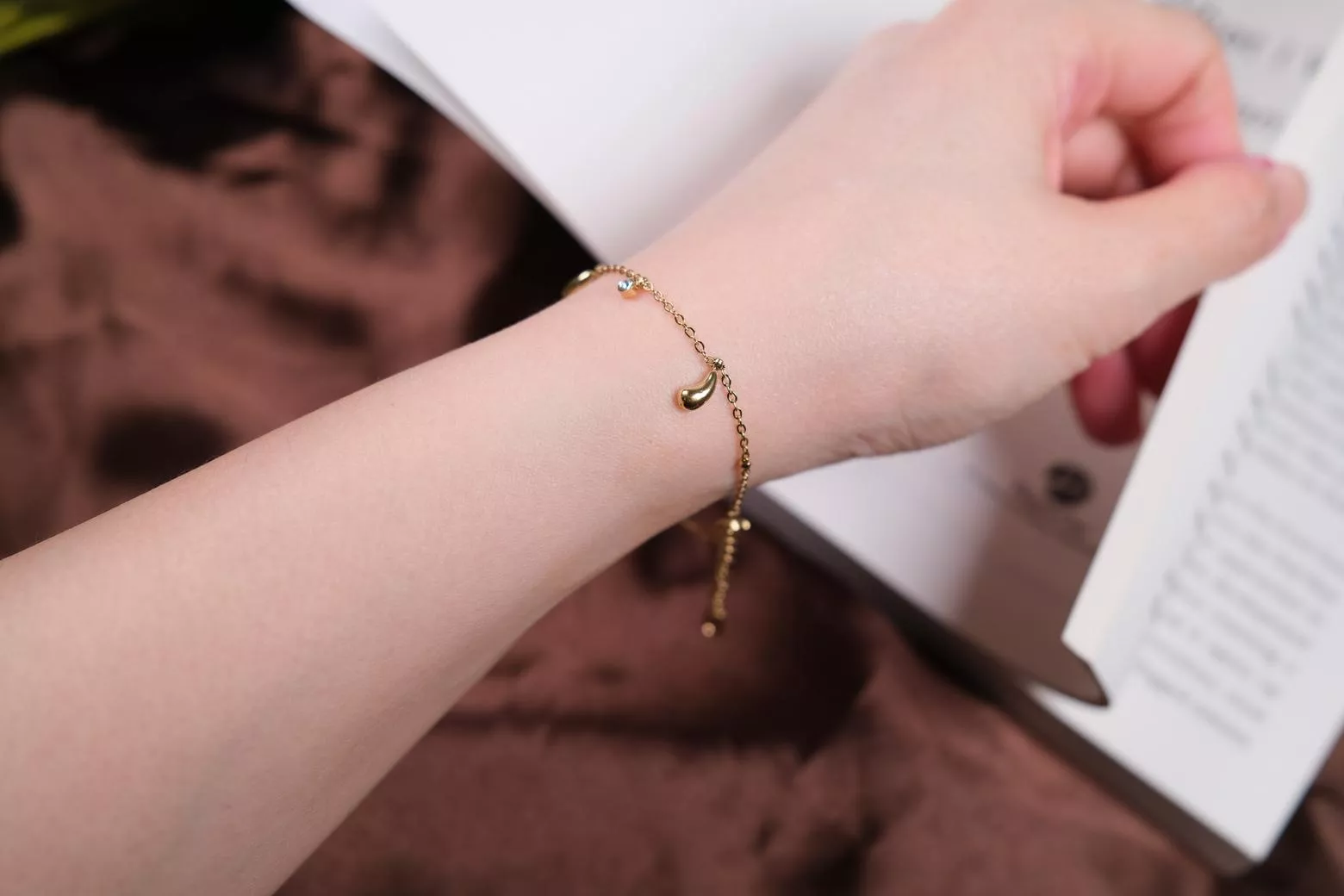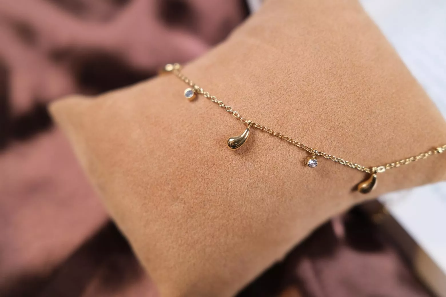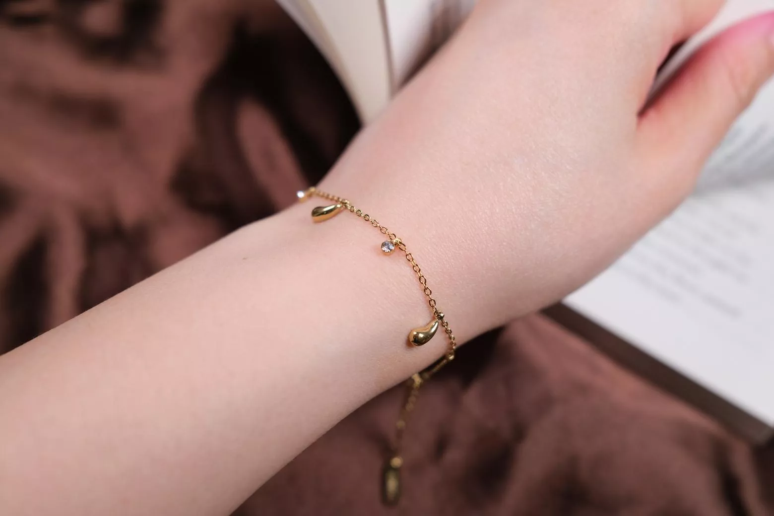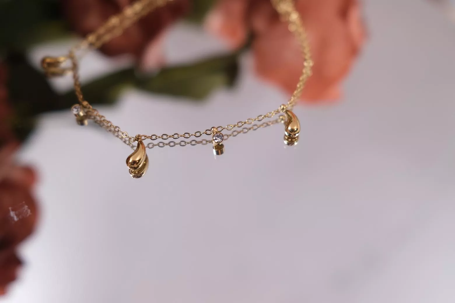 〔夢雨〕水滴鋯石金色手鍊