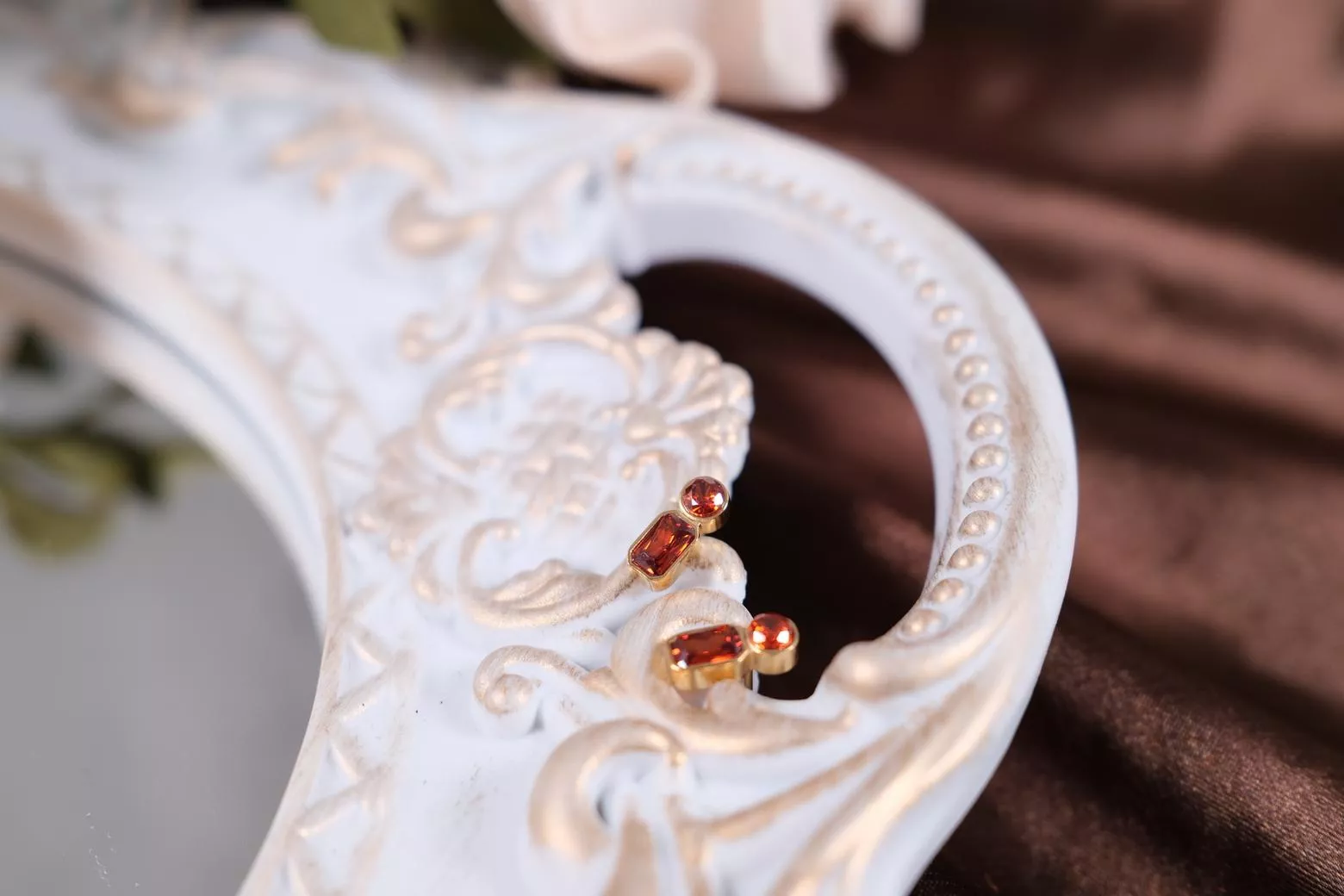 紅寶石感雙層鋯石設計,圓形+長方形組合,增加視覺層次感