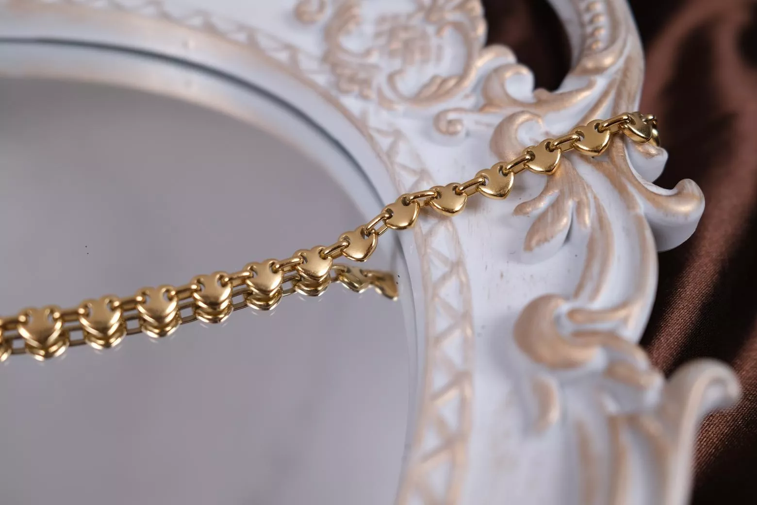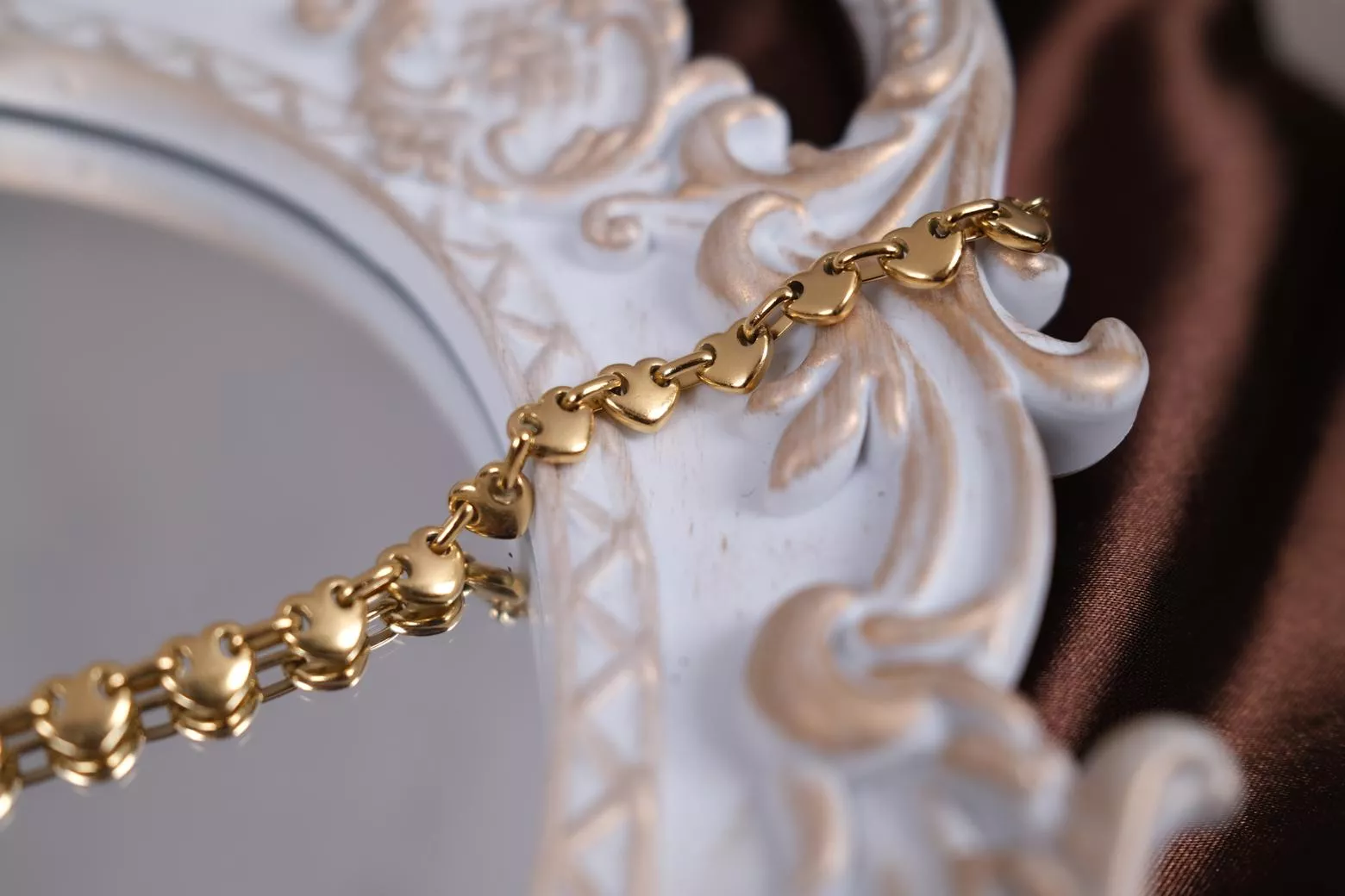 - 不鏽鋼/鈦鋼鍍金之色澤,自然偏深一點的古典金色(非淺金)。