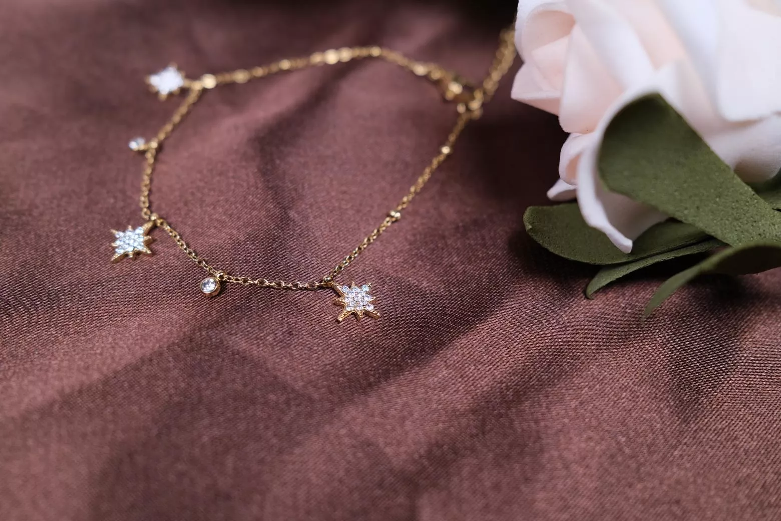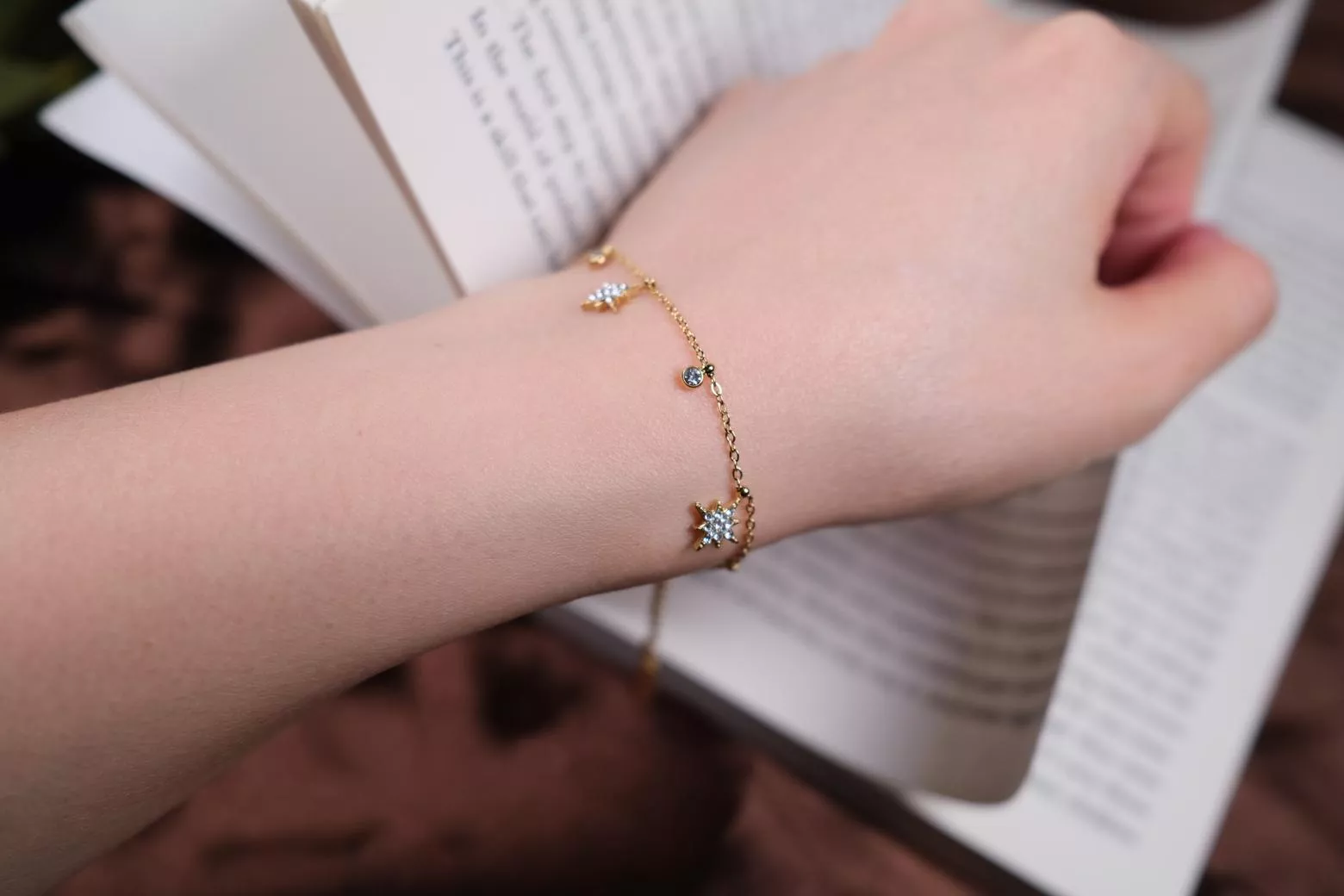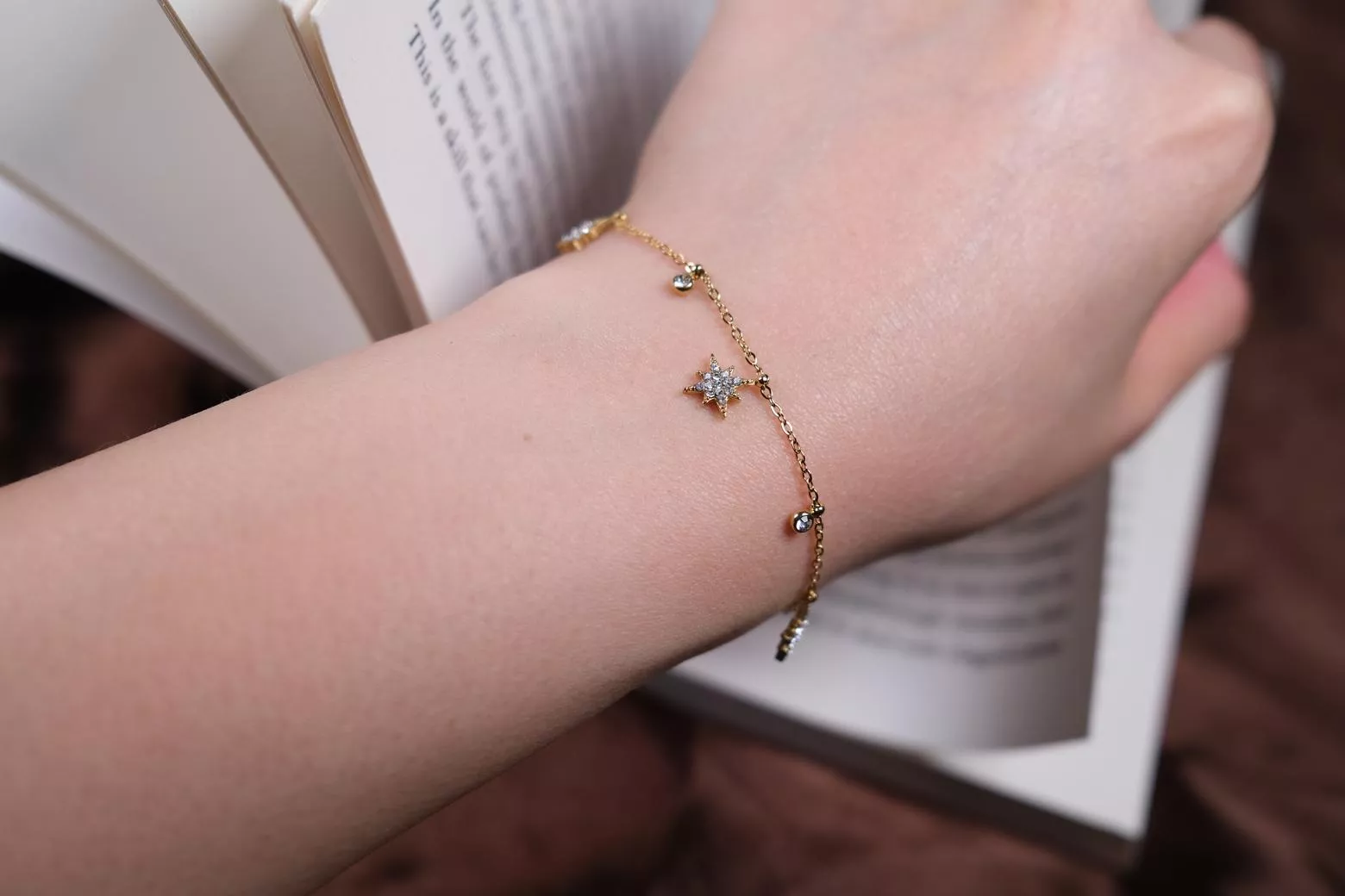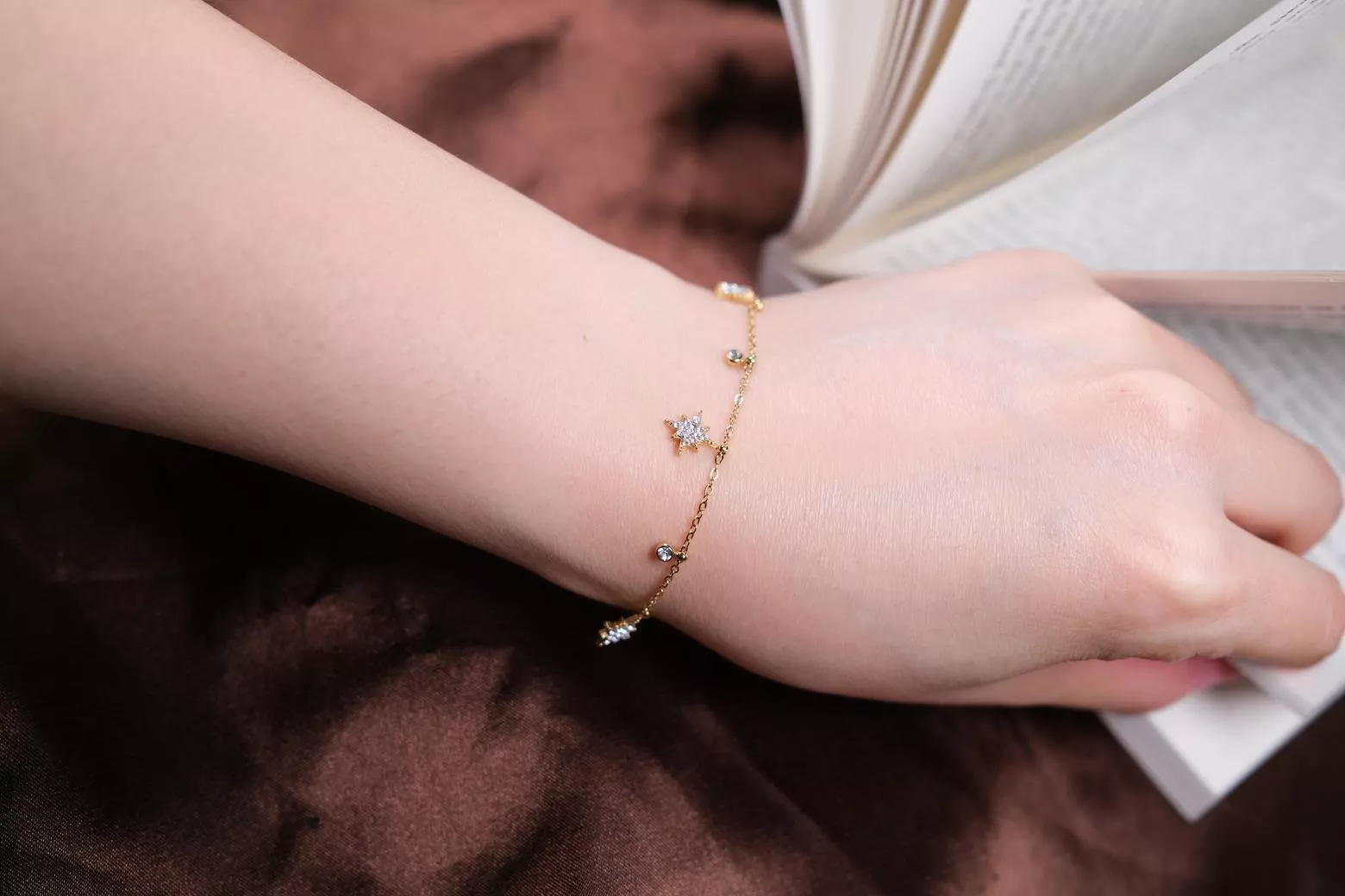 手鍊以芒星為主角,點綴細緻鋯石,如夜空中灑落的繁星,為你帶來恆久不滅的閃耀能量。輕盈不張揚,展現妳細膩又堅定的光芒。