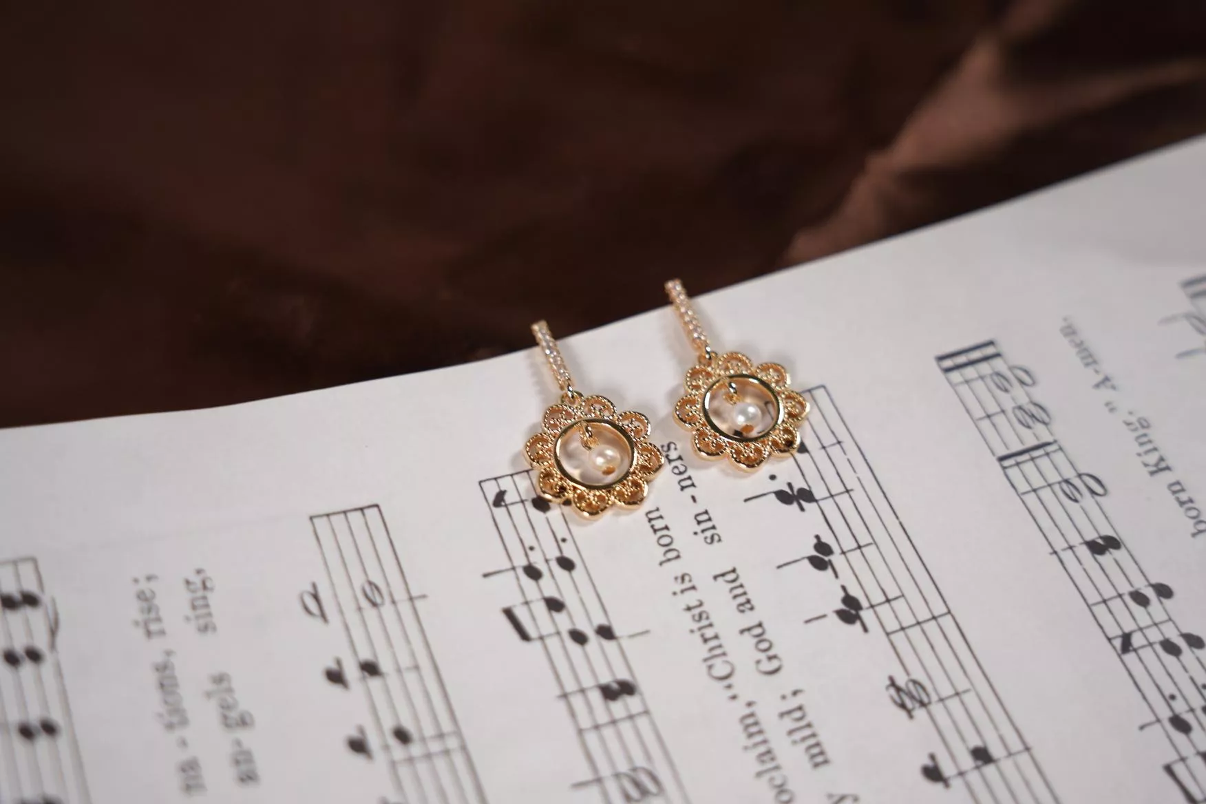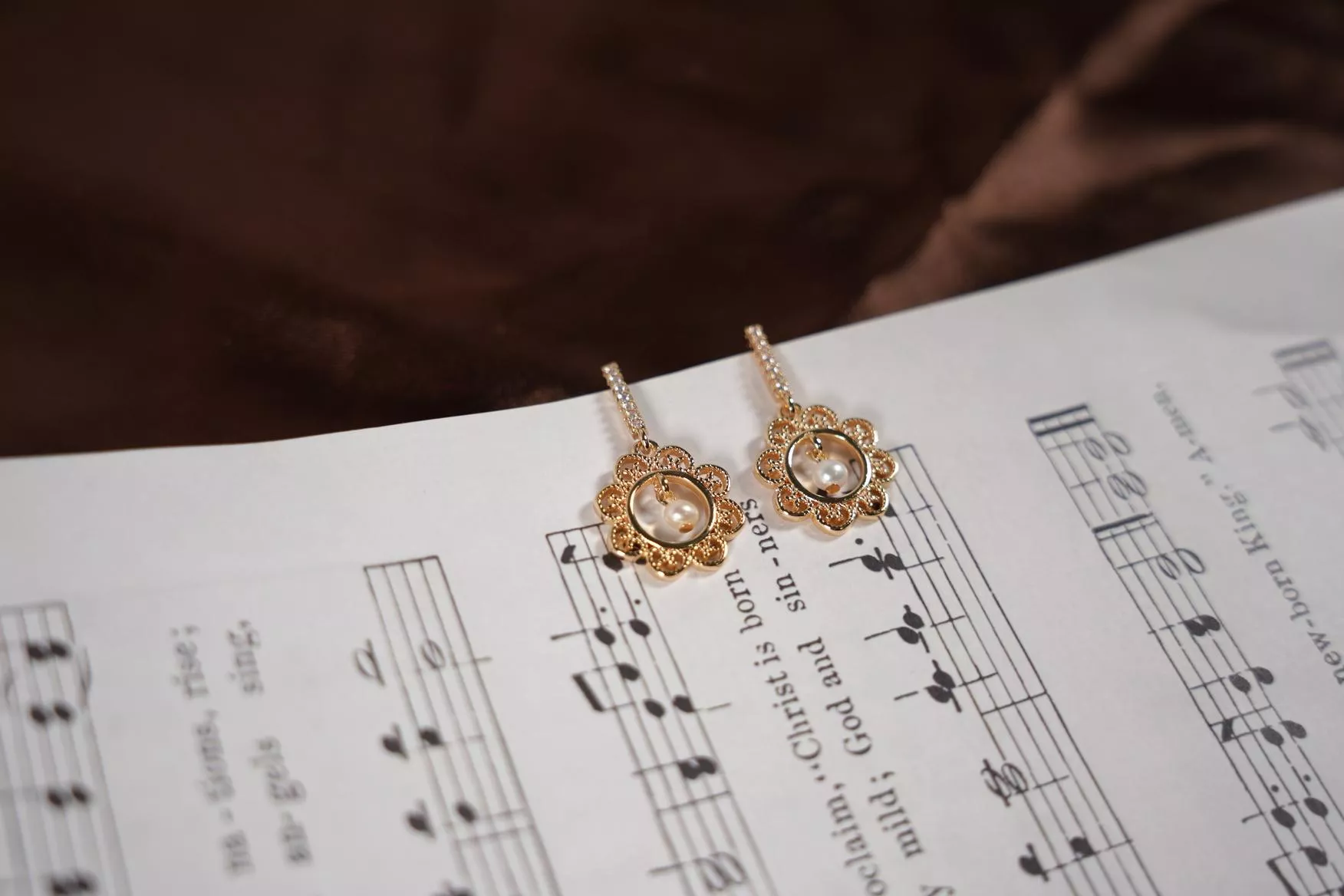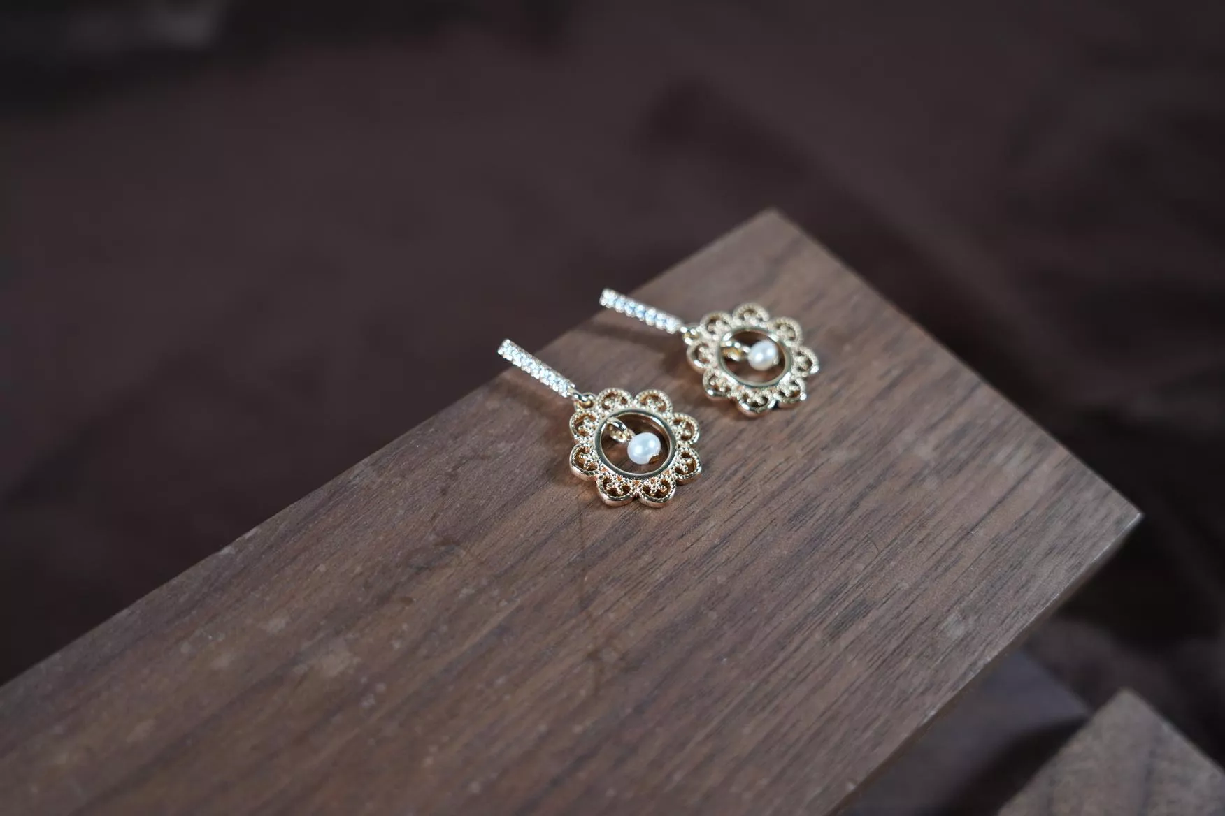 【花間獨白】鏤空雕花珍珠耳環