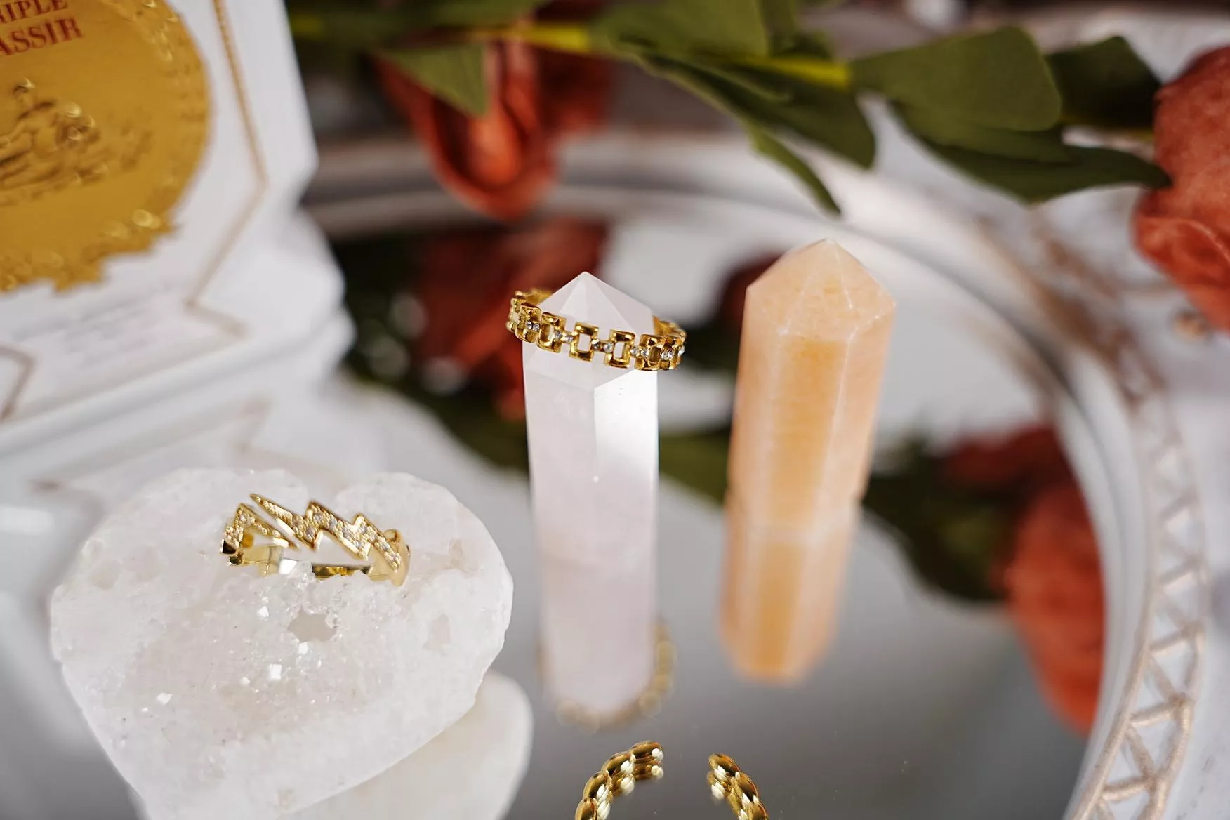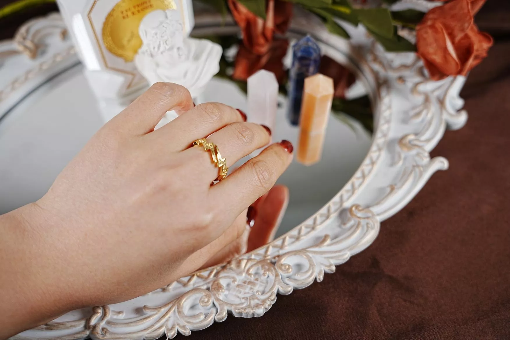 - 建議避免接觸香水、化學品,不佩戴時請收納於夾鏈袋中,以延長色澤的時間。
