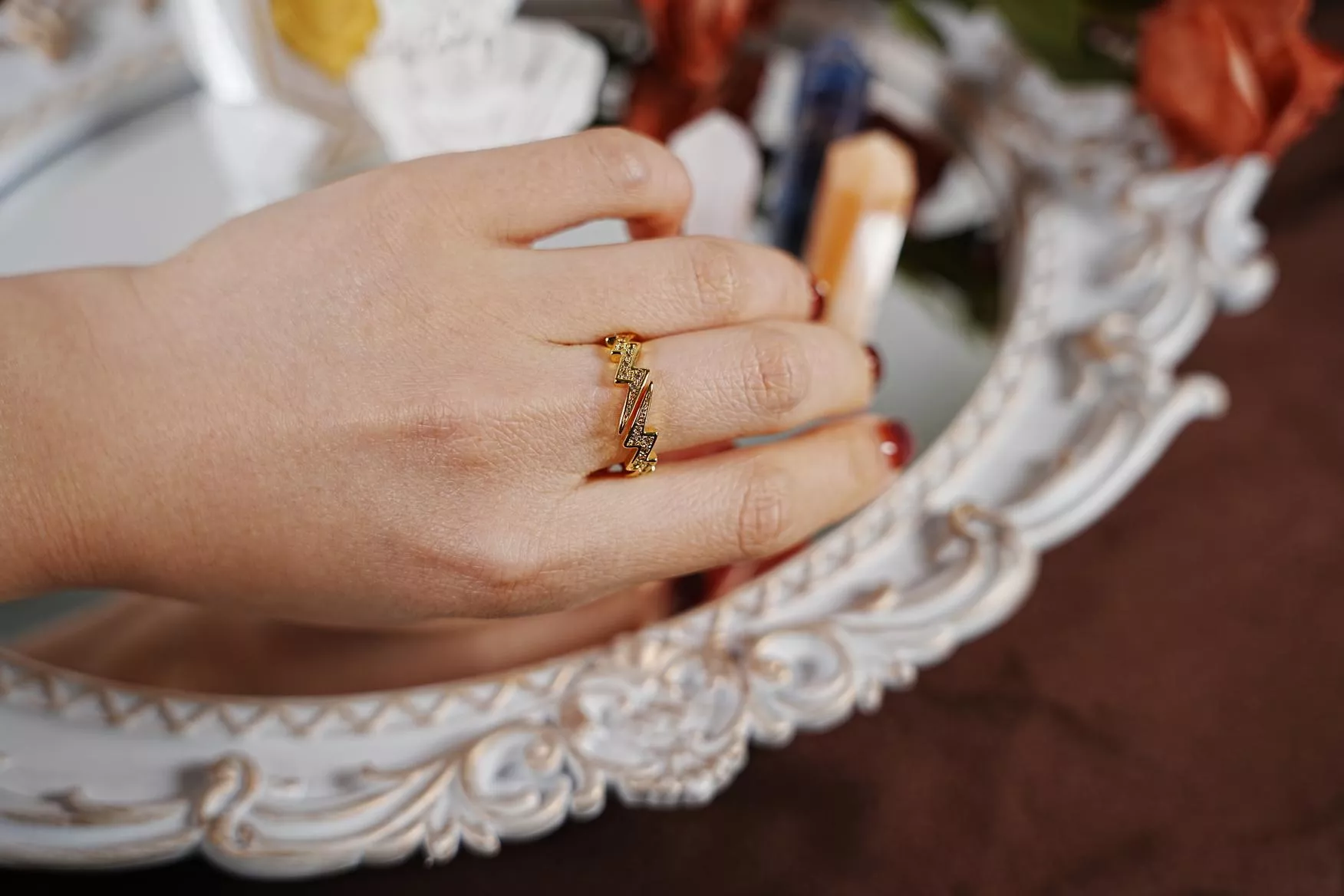 「破曉之矛」以俐落的閃電線條,在指尖勾勒出不妥協的自我風格。 碎鑽隨光影流轉,像是在微光中跳動的電擊, 獻給每一位在生活裡,敢於閃耀、直面挑戰的妳。