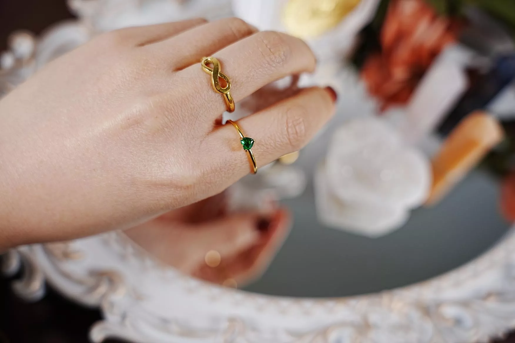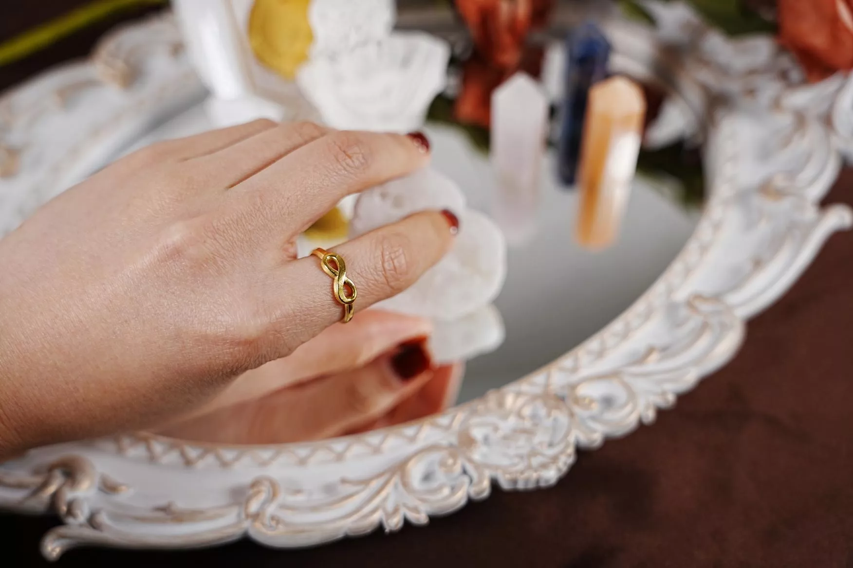 - 建議避免接觸香水、化學品,不佩戴時請收納於夾鏈袋中,以延長色澤閃耀的時間。