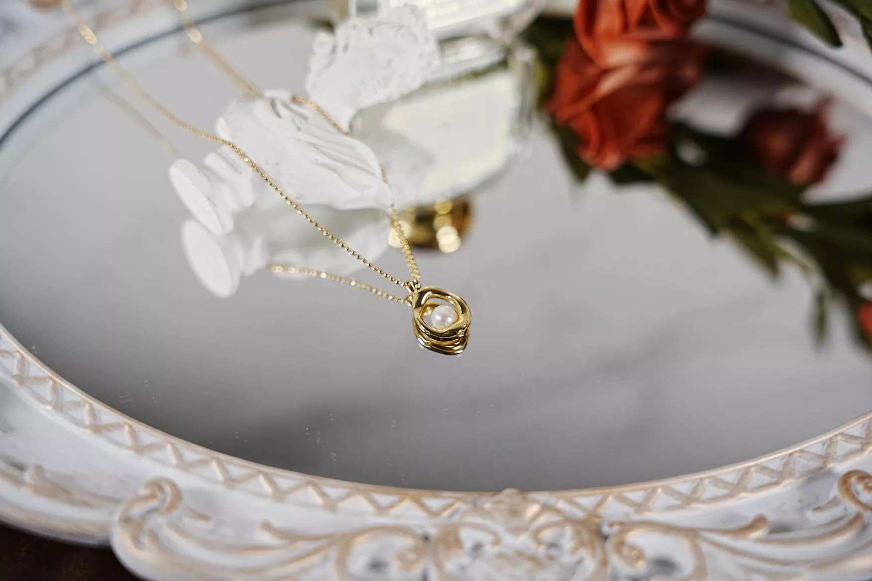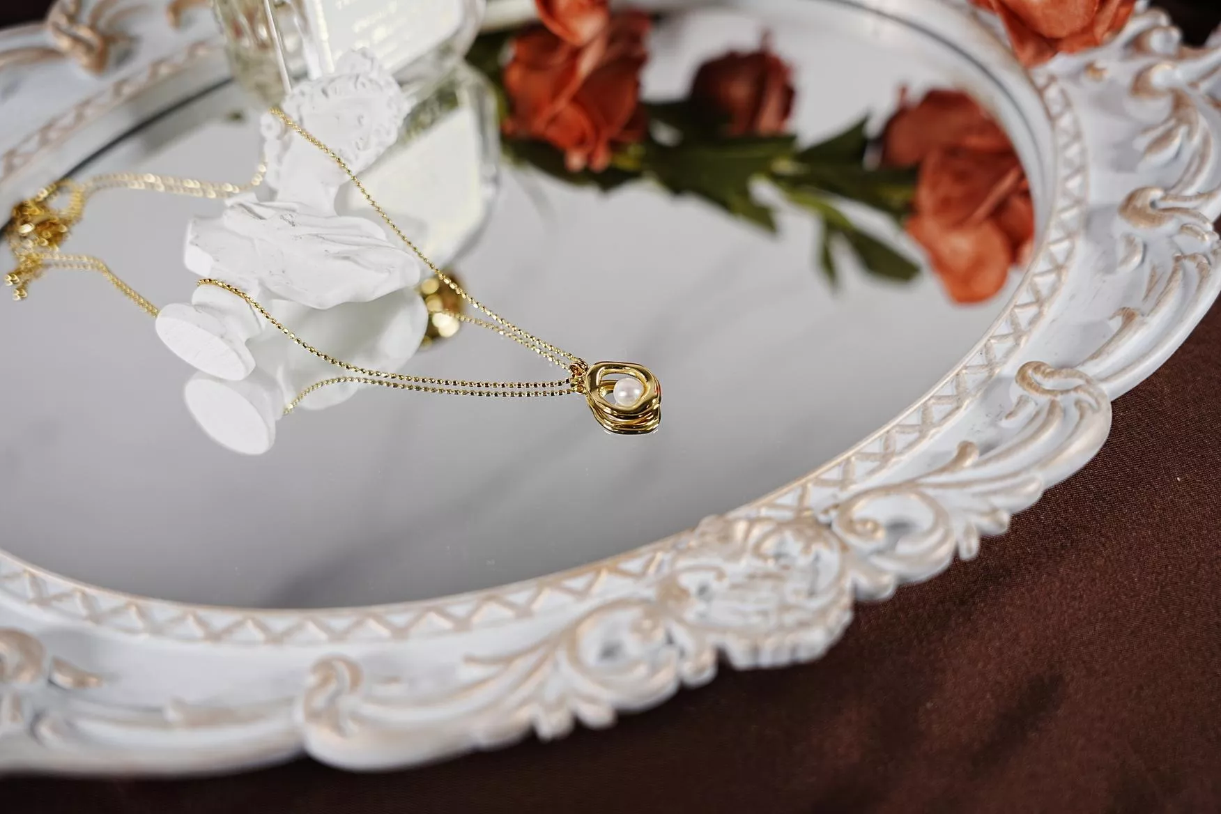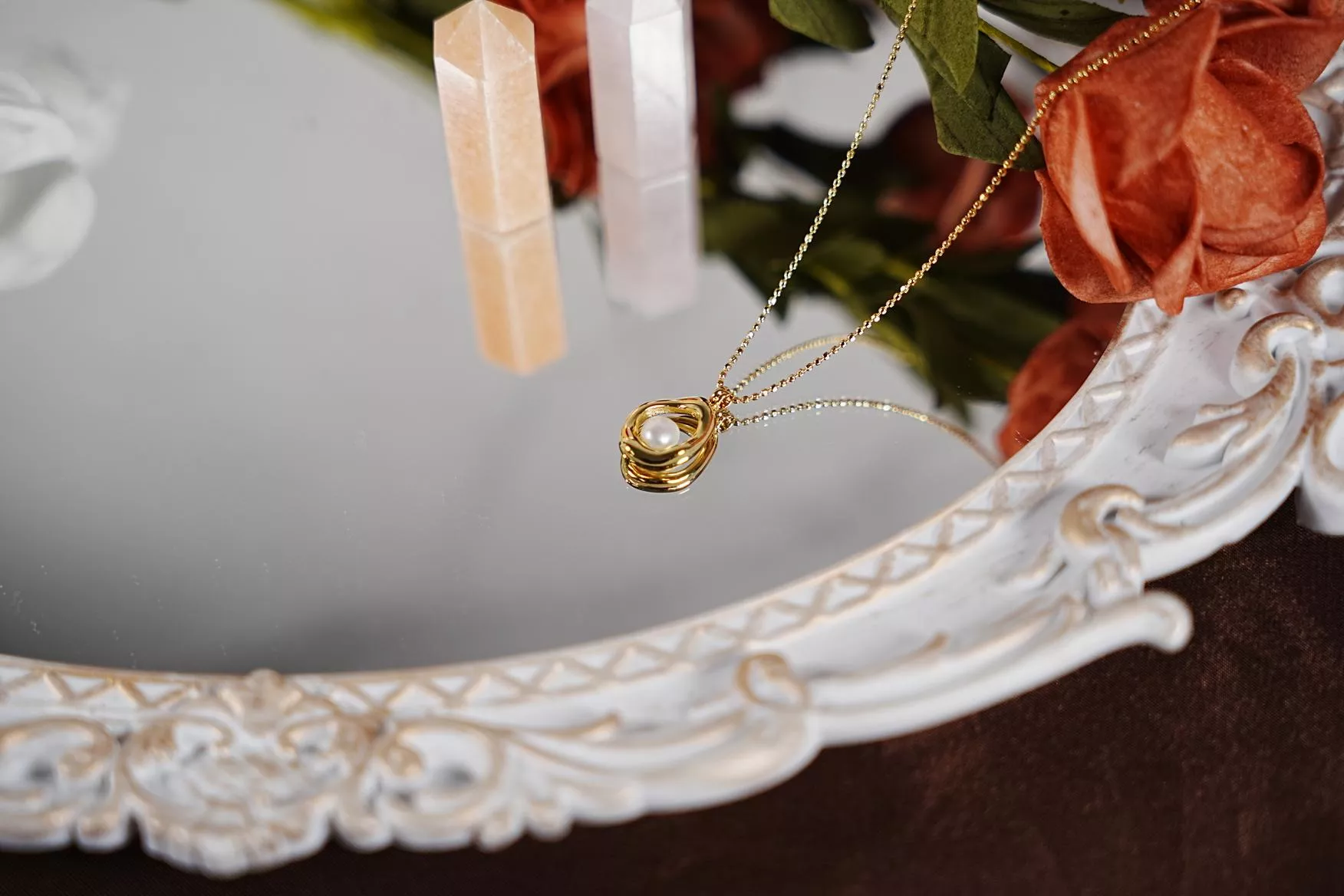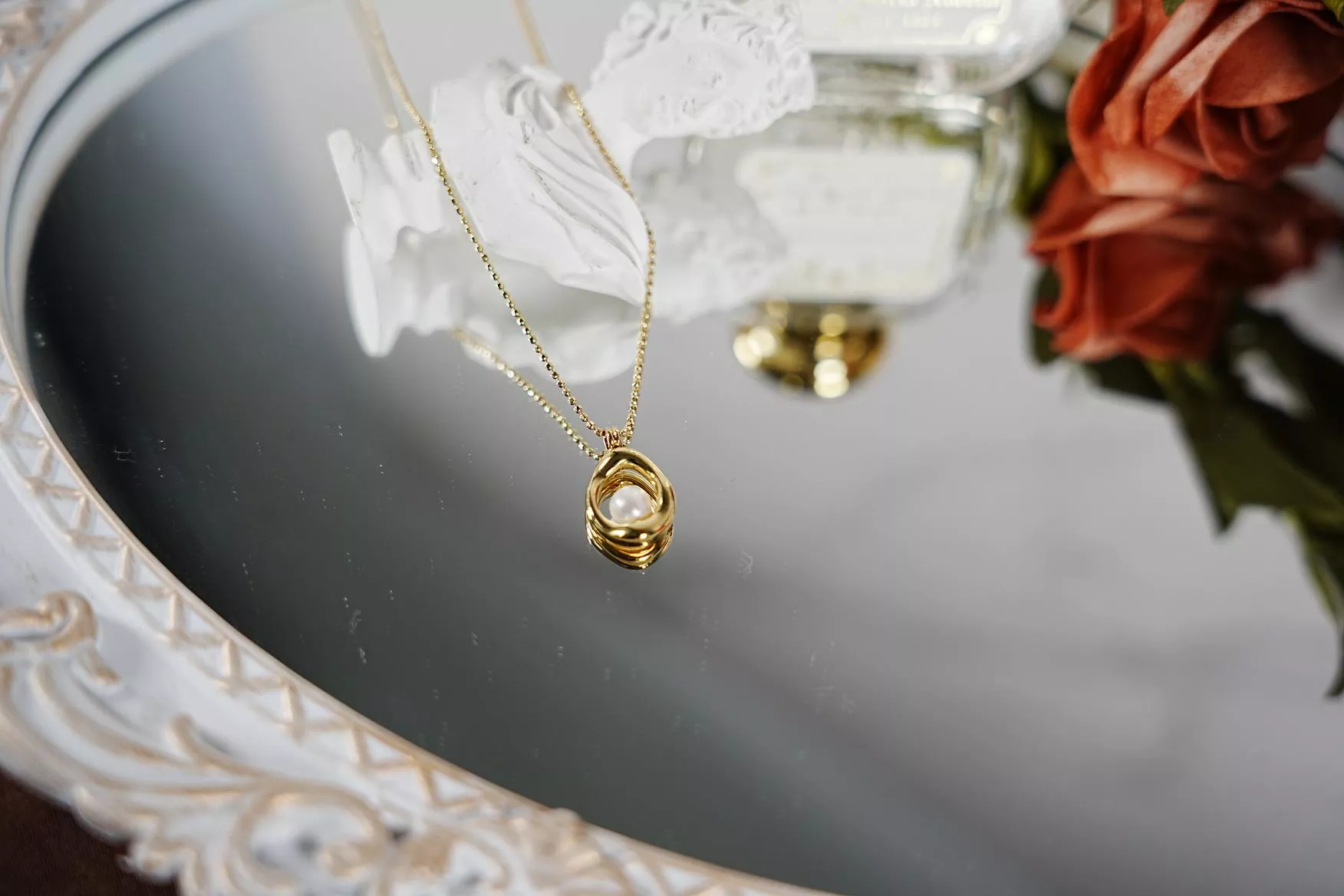 打破規整的圓形,以不規則的流線外框圍繞珍珠