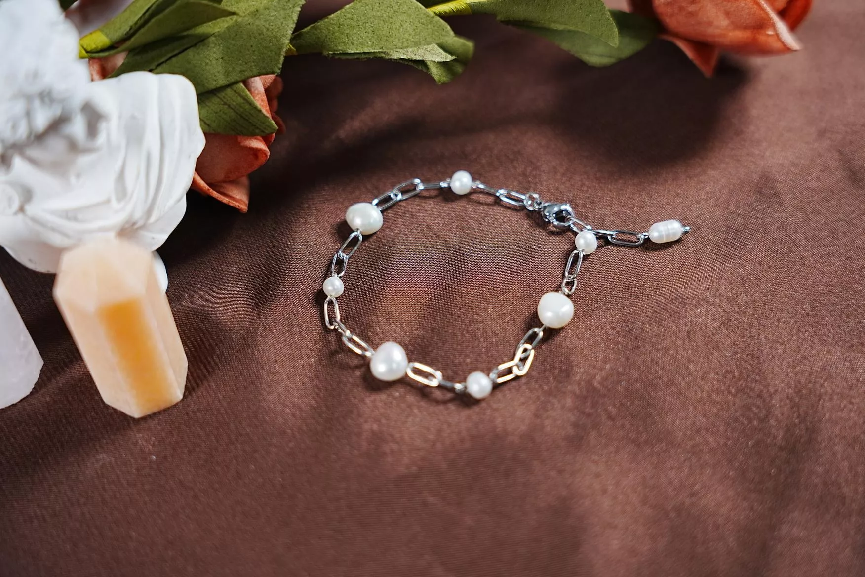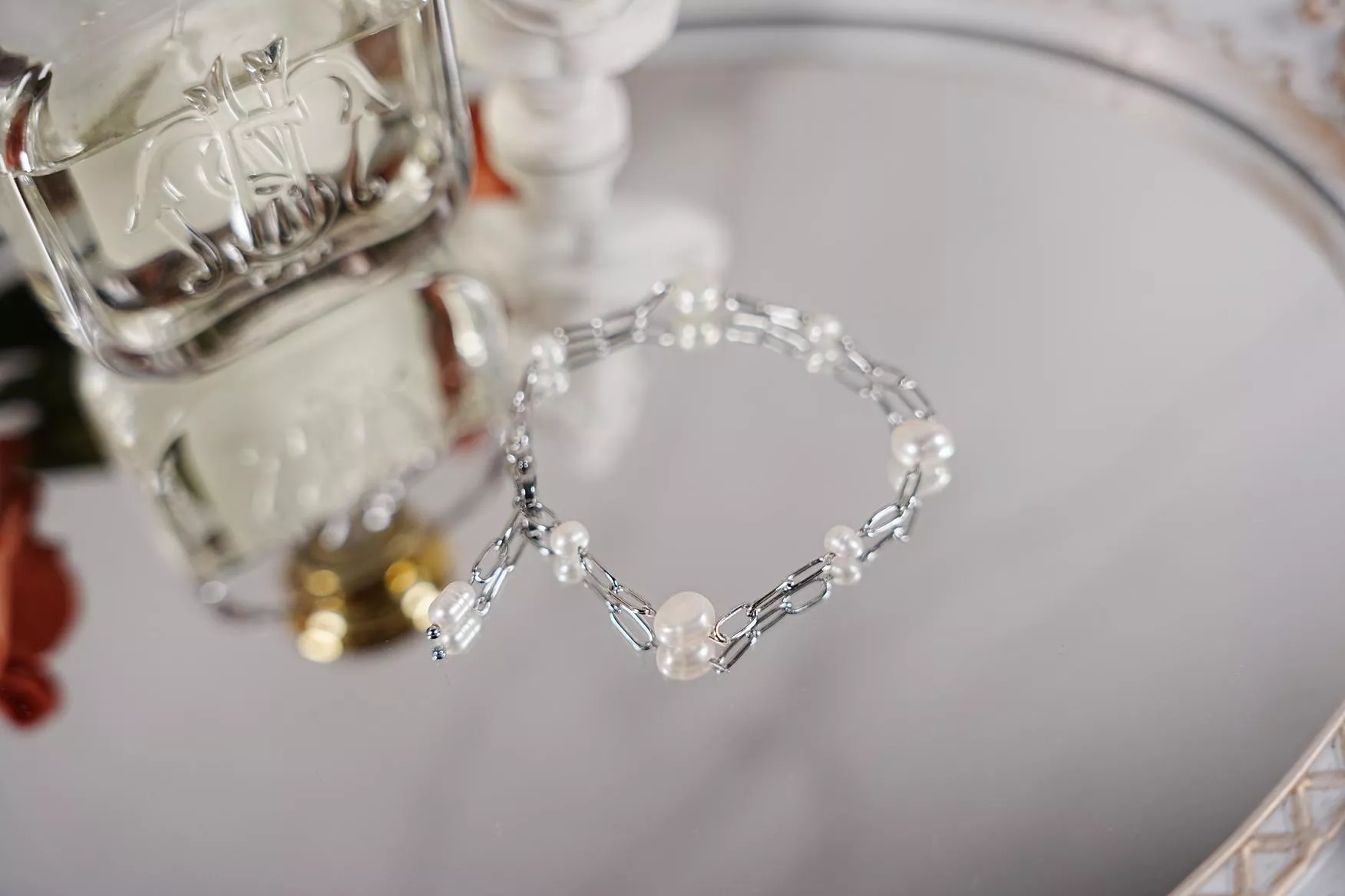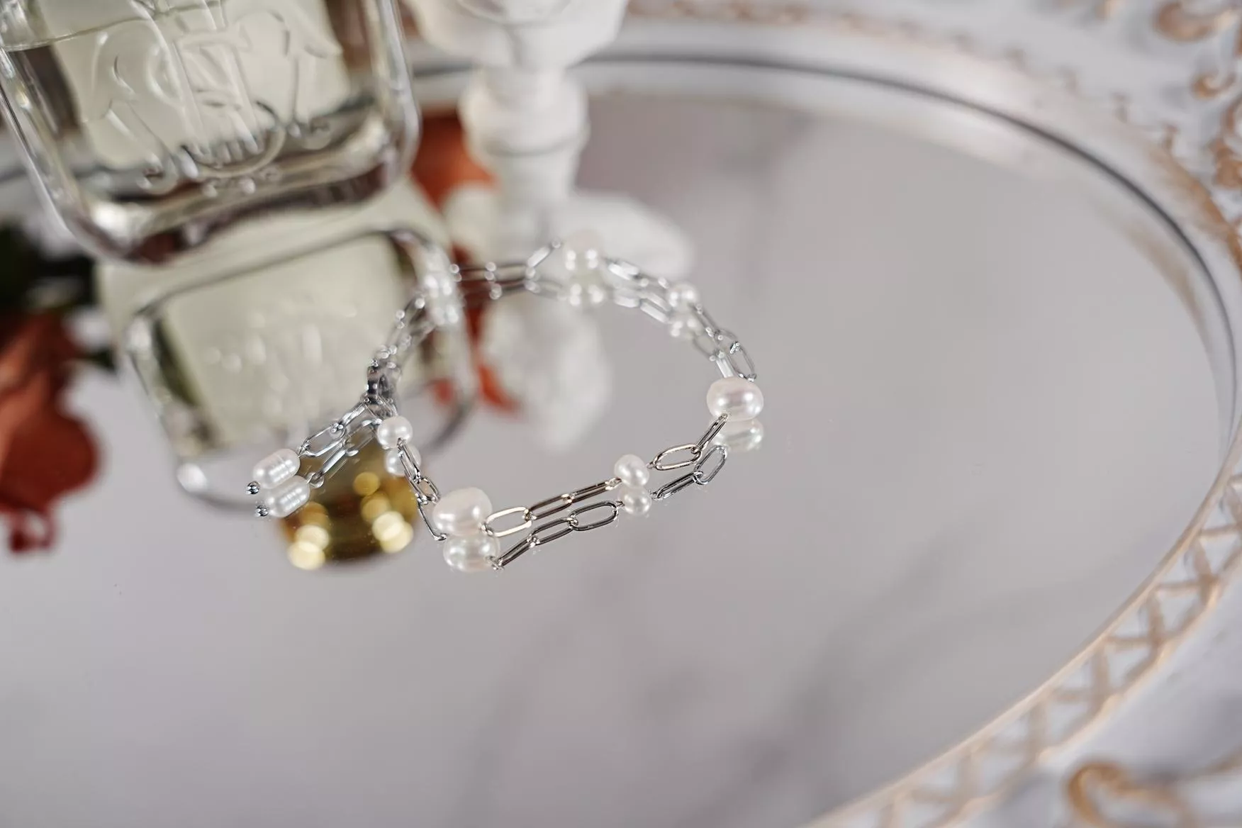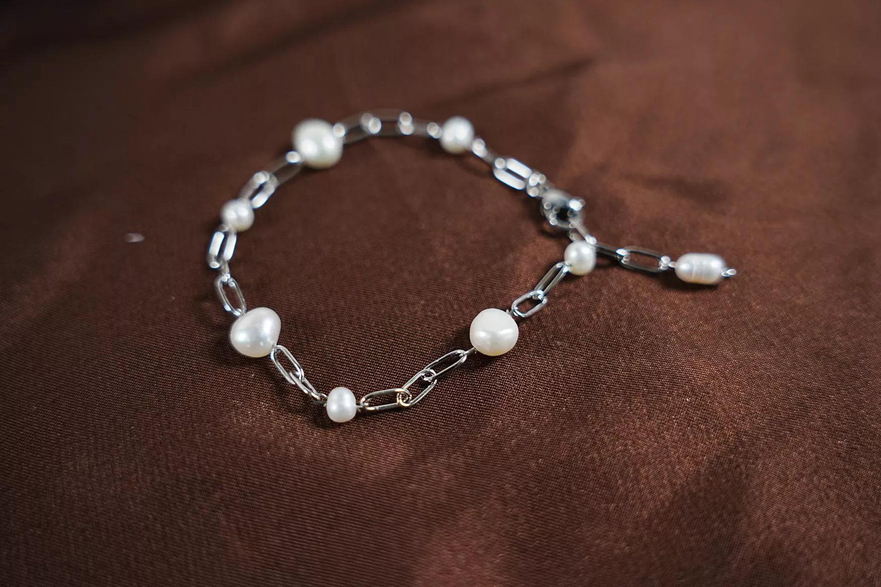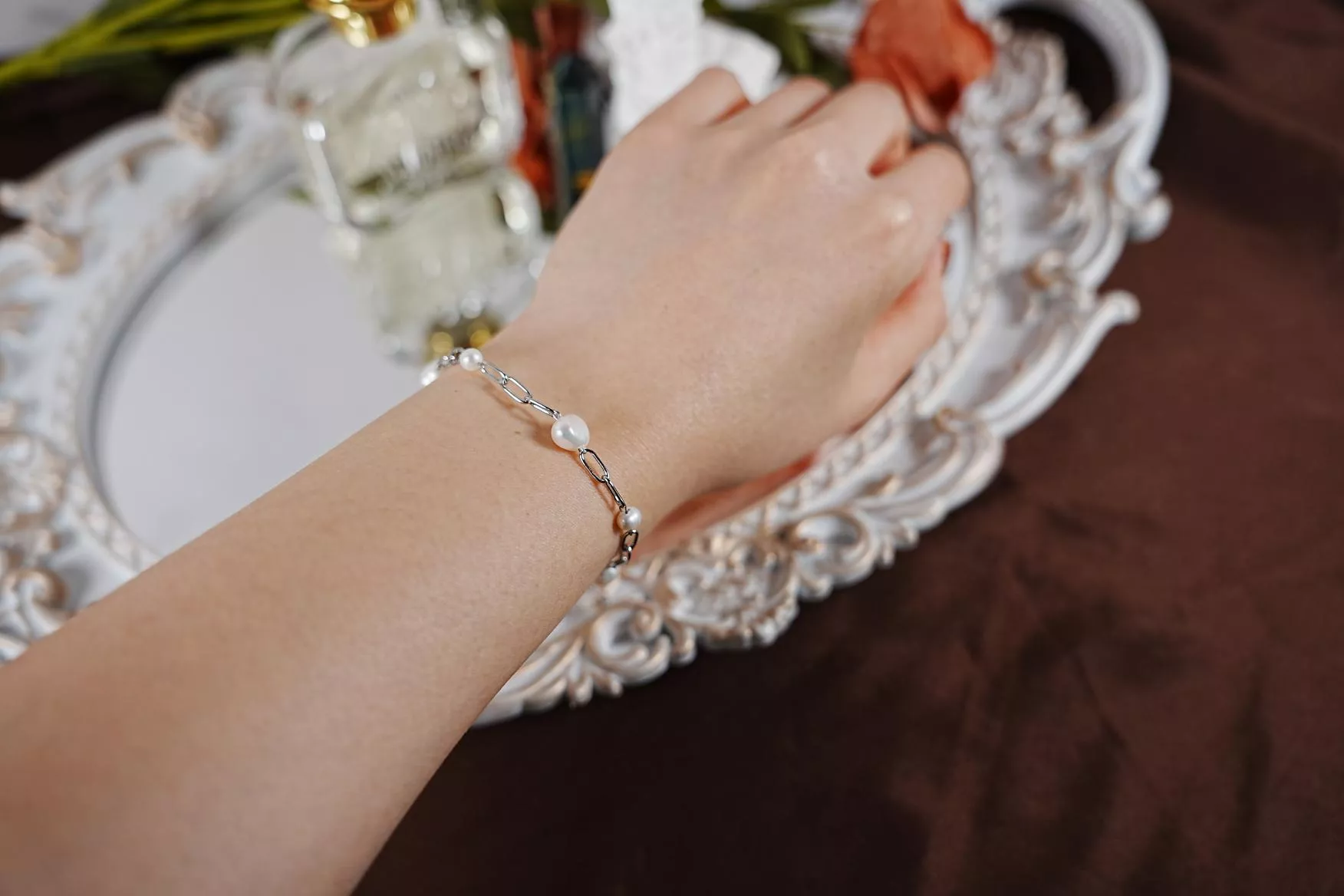 珍珠不再整齊並排,反而像是在銀色軌道上跳躍的音符,充滿自在的呼吸感